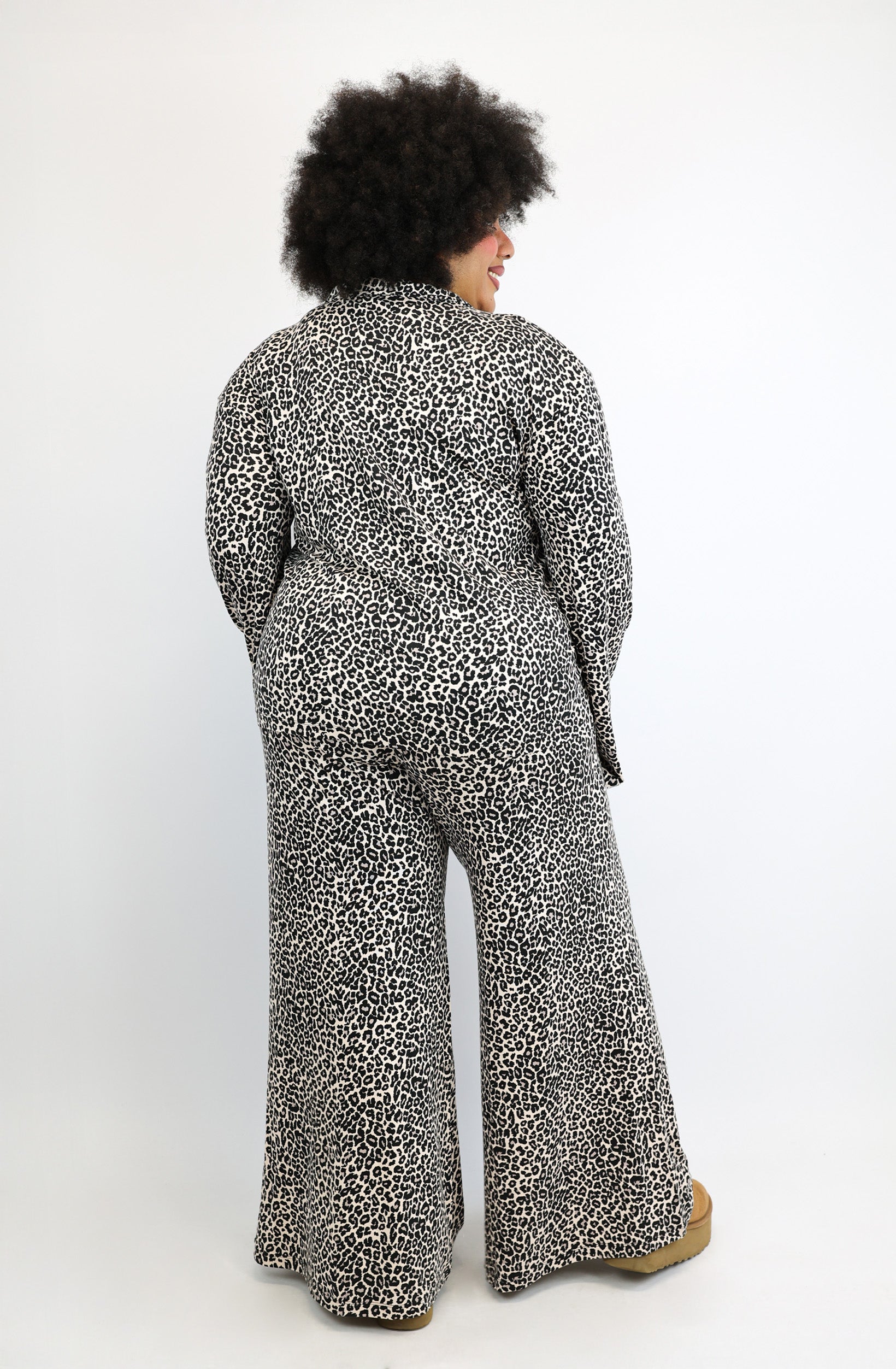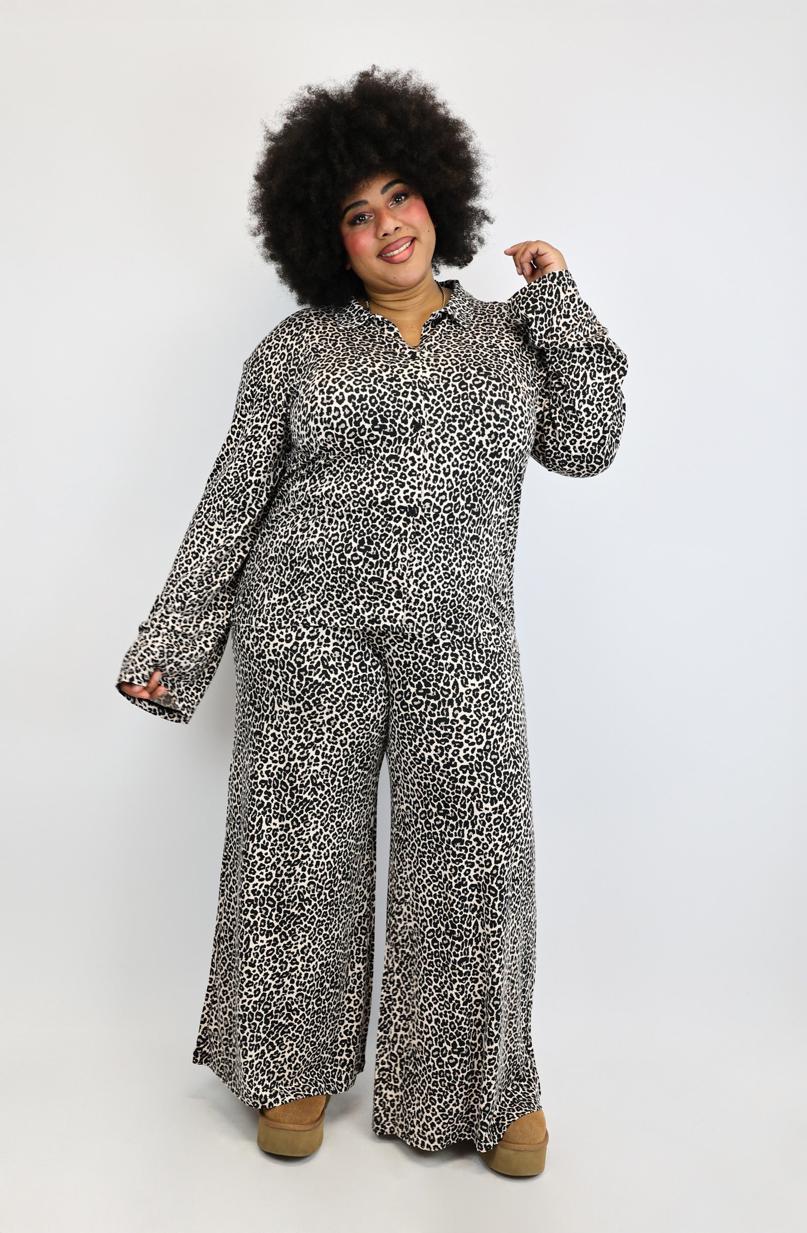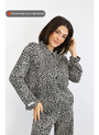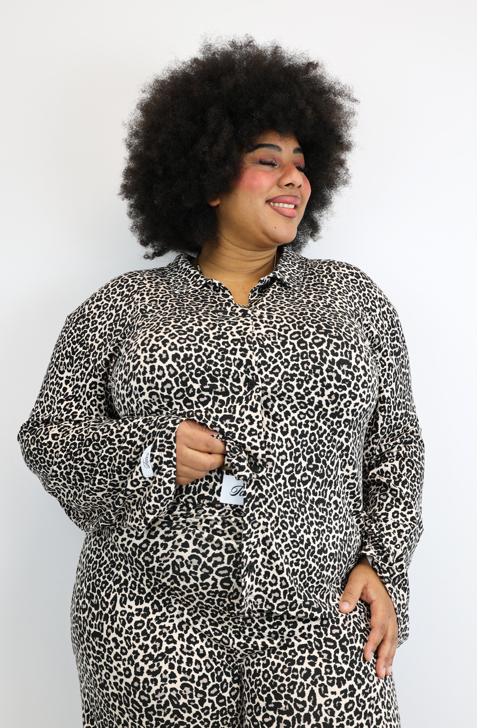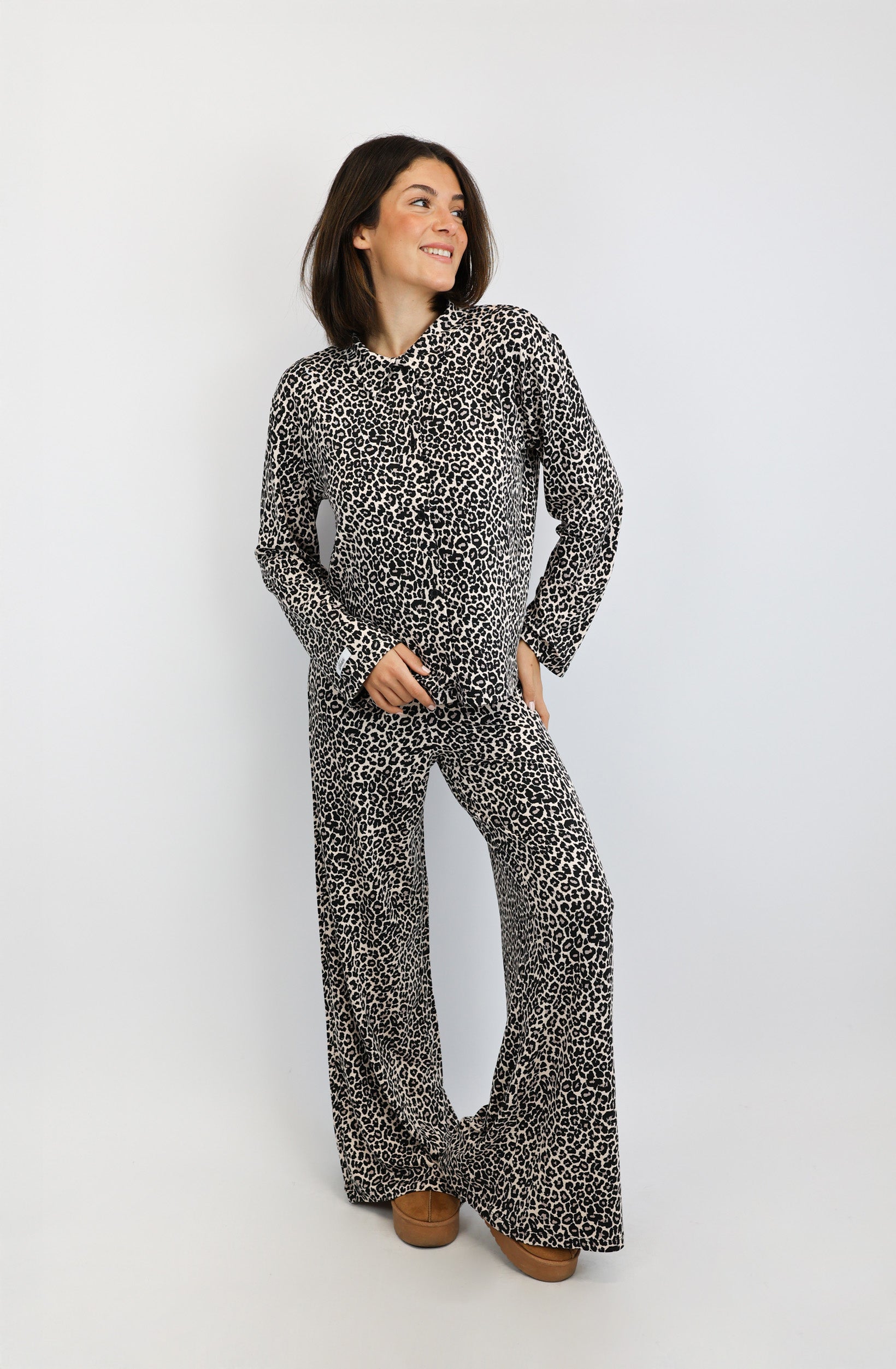 Das Hemd kommt in einem ruhigen, modernen Leoprint. Dezente Logo-Details an Bund und Ärmel runden den Look ab – stilvoll, nicht laut.