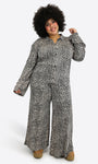 Das Hemd fällt locker über die Schultern, die Hose sitzt bequem an der Hüfte und läuft mit weitem Bein aus. Nichts engt ein, alles bewegt sich mit dir.