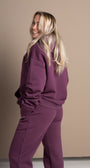 Das Model ist 163cm groß und trägt Größe XS (Aubergine).