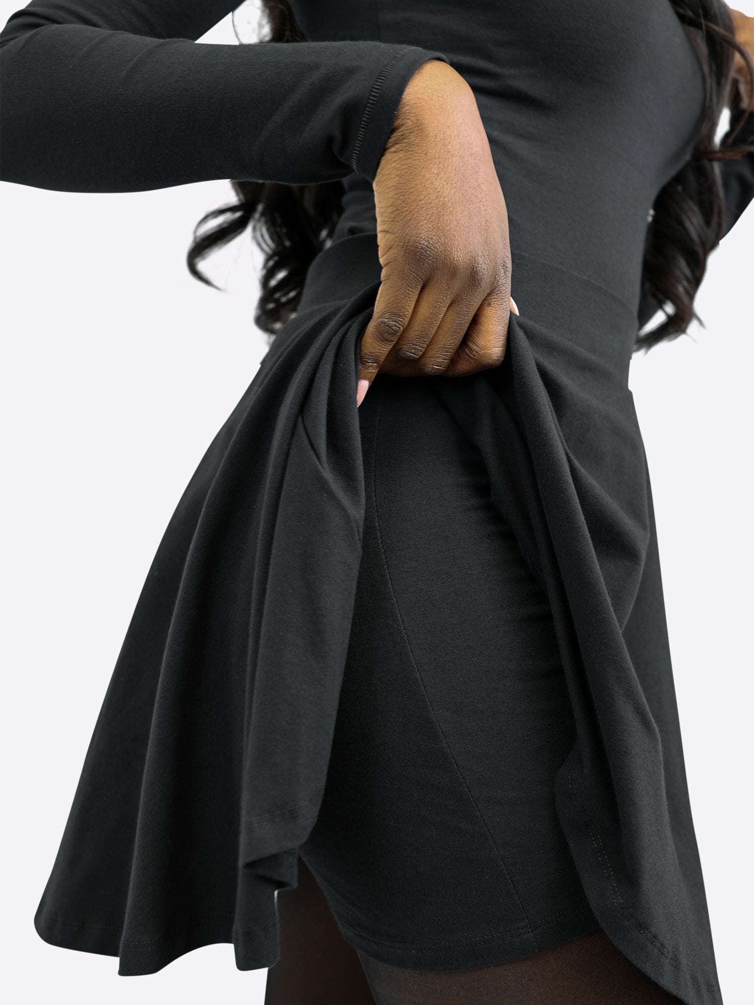 Mit unserem kurzen Skort vereinen wir Komfort, Stil und Funktionalität. Der körpernahe Schnitt schmeichelt deiner Figur und überrascht mit einem cleveren Detail: eine integrierte Shorts, die dir maximale Bewegungsfreiheit und Sicherheit schenkt – egal ob im Alltag, auf dem Fahrrad oder beim nächsten City-Stroll.