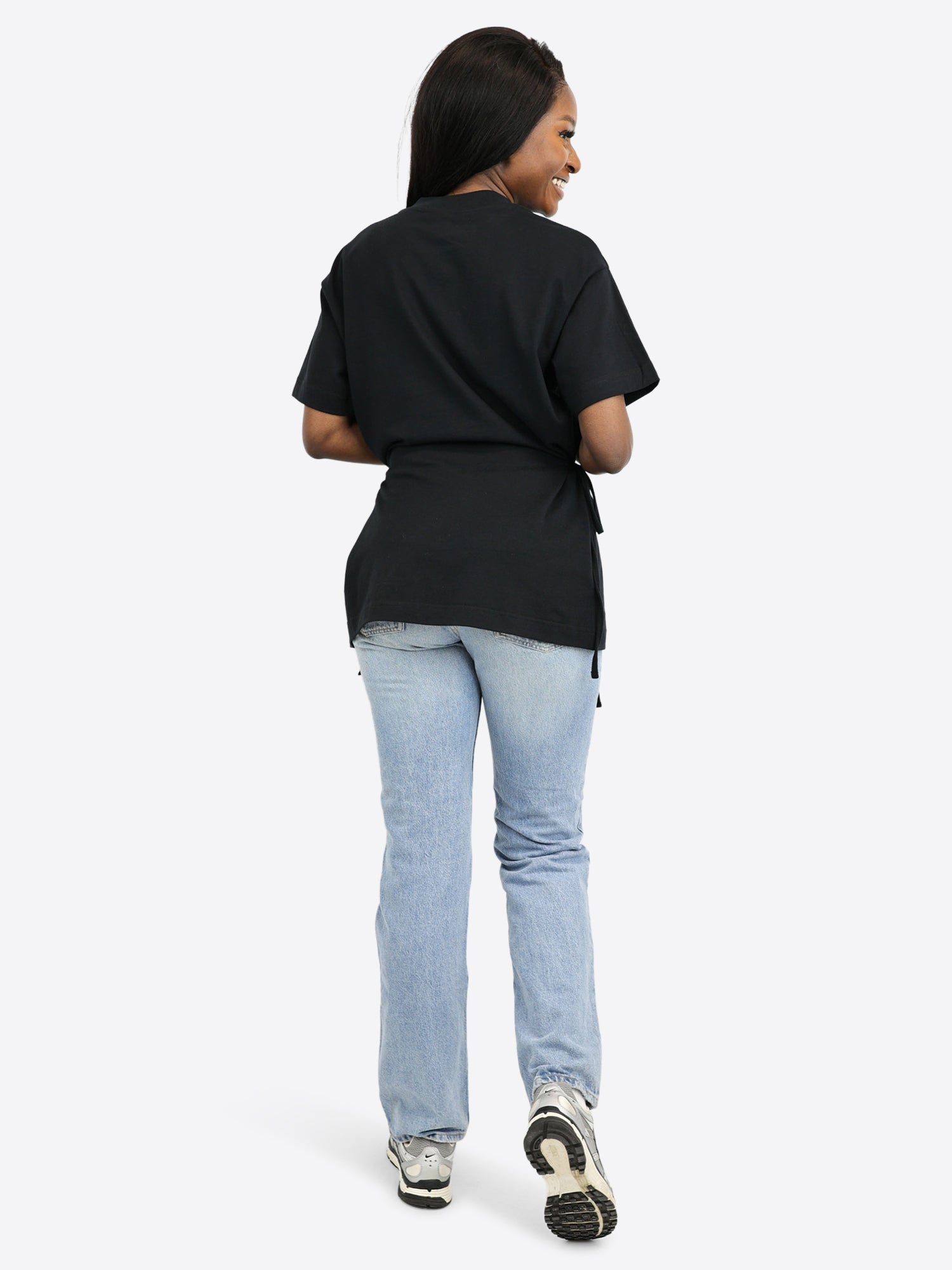 Die lockere Oversized-Passform fällt fließend und wirkt entspannt, während die Taillenbänder deinen Look individuell formen.