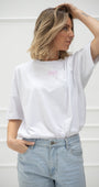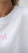 Mit ähnlichen Farben waschen, nicht im Trockner trocknen, Aufdruck nicht bügeln, auf links waschen und bügeln.