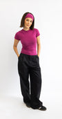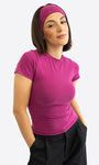 Erhältlich ist das Slim T-Shirt in Hellblau, Bubble Pink, Peach, Butter Yellow, Matcha, Dusty Blue, Berry, Rouge, Schwarz und Aubergine erhältlich.