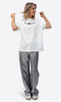 Mit ähnlichen Farben waschen, nicht im Trockner trocknen, Aufdruck nicht bügeln, auf links waschen und bügeln.
