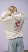 Unser "Après Ski Society" Hoodie ist in der Farbe off white erhältlich. Der Hoodie sitzt in deiner normalen Größe oversized - bitte beachte die Größentabelle. Das Material besteht aus 70% Baumwolle (Bio-Baumwolle) und 30% Polyester (Recyceltes Polyester). Unser Hoodie ist auf der Brust bestickt und hat auf der Rückseite einen Print.