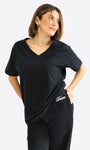 Der V-Ausschnitt bringt eine neue Silhouette in deine Soft Touch Kollektion. Die Passform bleibt locker und fließend – einfach zu kombinieren und ideal für jeden Tag.