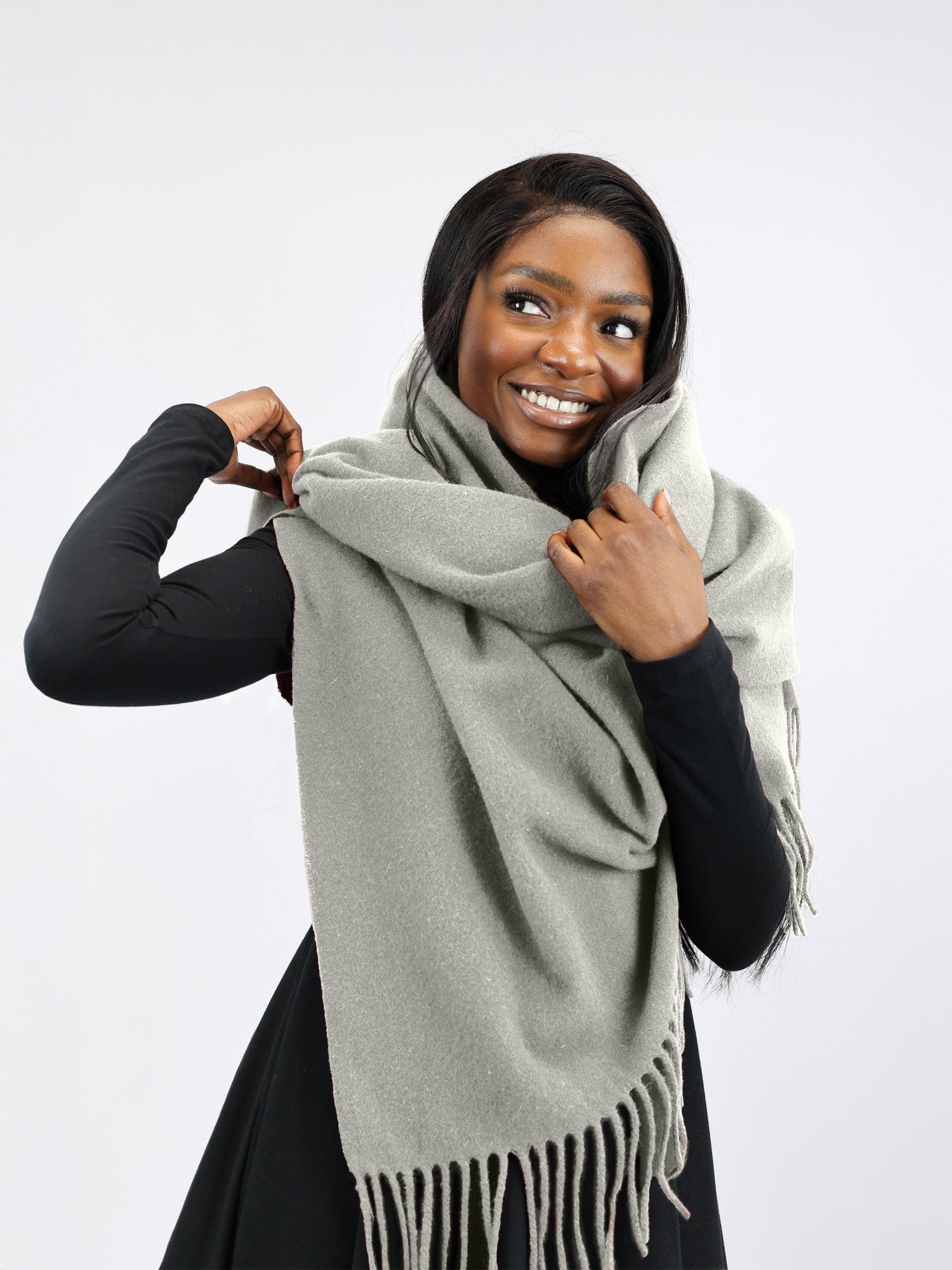 🧶Unser Wollschal in elegantem Hellgrau verbindet zeitlose Optik mit natürlicher Wärme.
